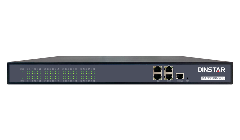 Dinstar DAG2500 is a reliable high-density analog VoIP gateway, with up to 96 FXS ports in 1U size, the most unique one you can find in the market. It offers a cost-effective solution for businesses who transit to new all-IP infrastructure unified communications such as Softswitches, IP PBXs, SIP trunks, and Hosted UC solutions while retaining investments in legacy phone equipment such as analog phones, fax machines, modems, or PSTN lines.